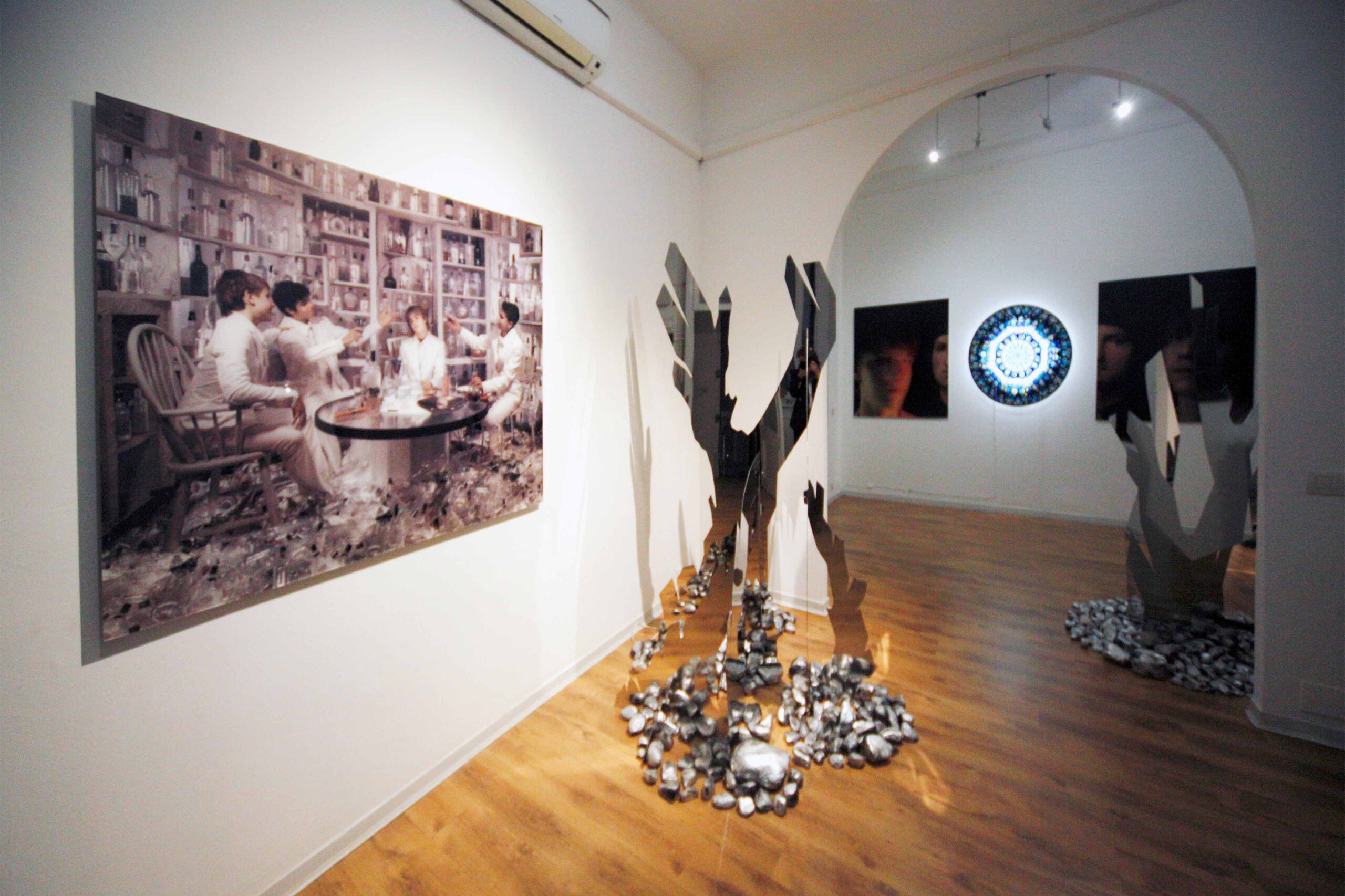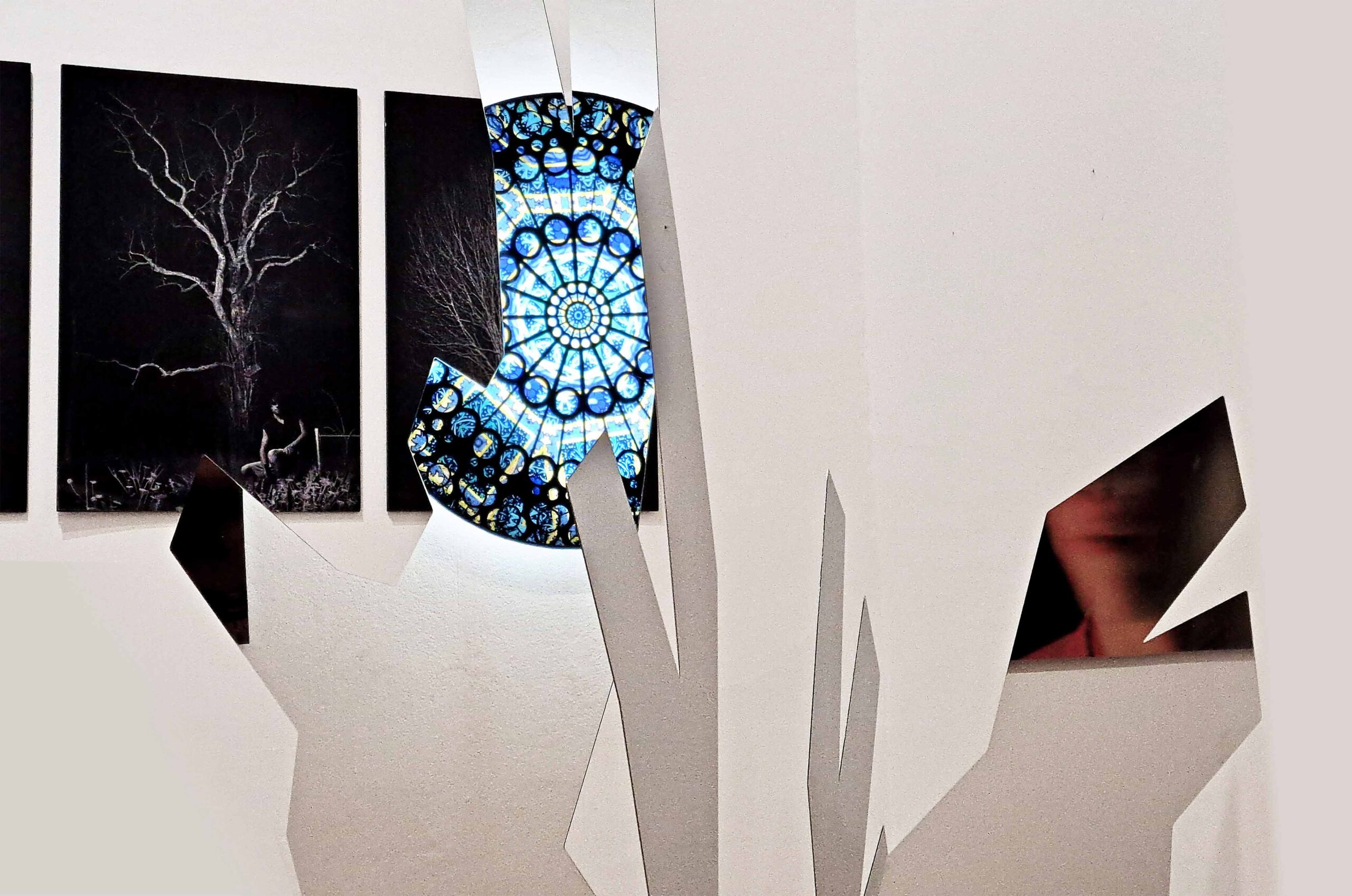 The stainless steel mirror-polished sculptures play a significant role in the exhibition, reflecting and refracting light in ways that underscore the central theme of the exhibition. They remind us that as we reflect on the past, our actions and choices continue to impact the present and the future, affecting the generations to come. The mirror sculptures are strategically placed throughout the exhibition to reflect light, highlighting the essence of photography as a medium that embraces light, reflection, and analysis.