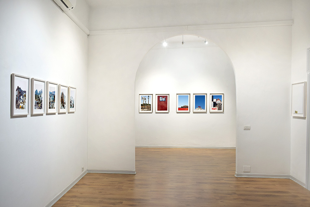A significant section of the show is dedicated to the photographic project ABC (2013), which is still in progress. Positioning herself in an ideal continuity with Ghirri’s Viaggio in Italia, Rossi delivers a comprehensive investigation of peripheral areas in Italian cities. Sara Rossi explores the relationship between advertising signs and the urban landscape: she isolates textual elements while simultaneously placing them in dialogue with one another, creating genuine visual poems. The contrast between irony and profundity opens new interpretations of the relationship between words, images, the urban environment, and the elements that shape our collective memory.